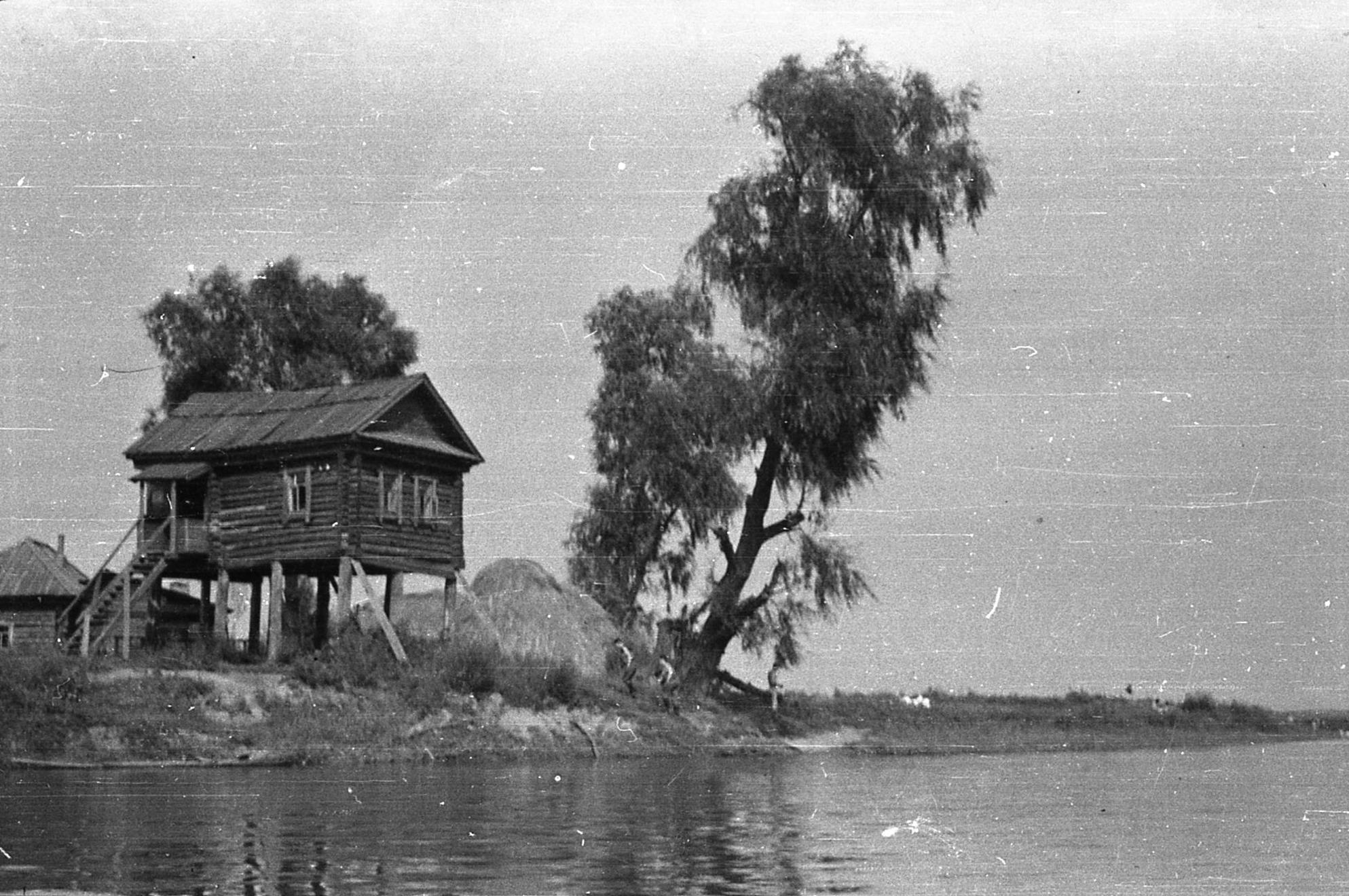 10. 1940-1950 годы. Еще одно фото из супердалекого прошлого. Об асфальтной дороге никто и подумать не мог. Маленький дом на сваях – одна из построек при мельнице. Сваи нужны для того, чтобы весной дом не уходил под воду вместе с островом.