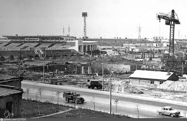 Благодаря Центральному стадиону можно понять, что это место будущего казанского цирка. На фото строительные пейзажи 1966 или 1967 годов.