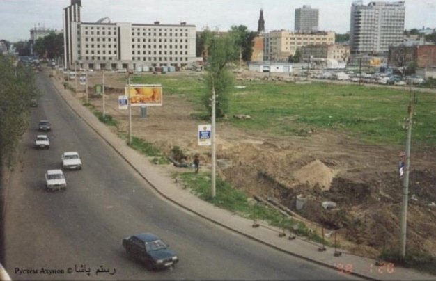 Казанской «Пирамиде» не тысячи лет, поэтому на этом фото за 1996 год ее нет. Есть только намек на новый развлекательный комплекс – квадратное основание. Открыли «Пирамиду» спустя шесть лет.