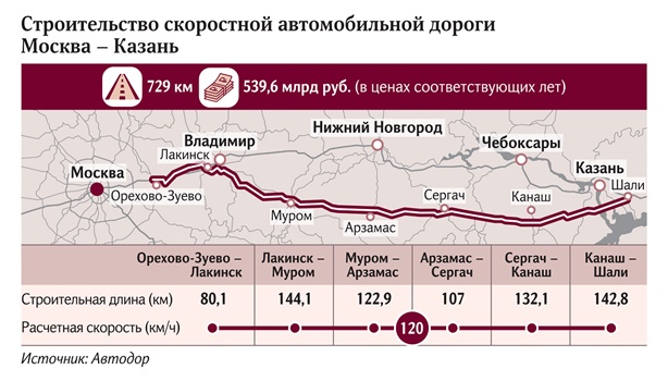 Трасса растянется на 729 километров. Скорость движения по дороге составит 120 км/ч. Доехать до Москвы можно будет всего за шесть часов.