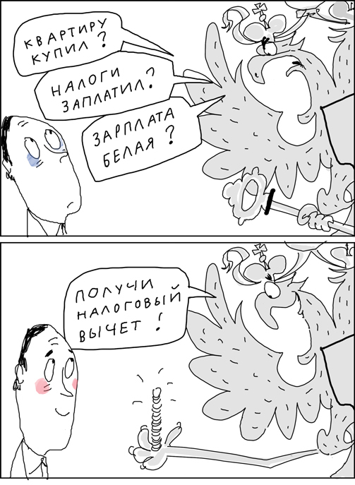 После этого с зарплаты перестанут удерживать 13%-й налог. Счастливая безналоговая жизнь продлится до тех пор, пока вы не получите всю сумму вычета за купленную квартиру.