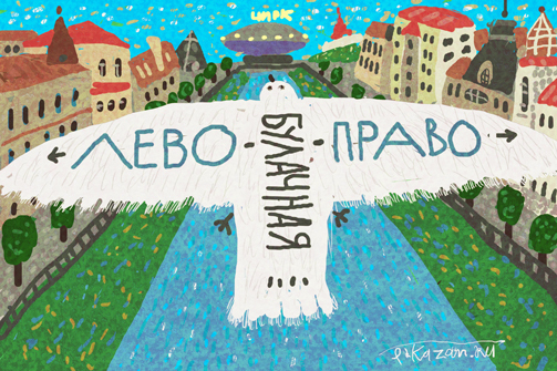 Запомнить просто. Мысленно встаньте лицом к цирку, тогда Право-Булачная окажется по правую руку, а Лево-Булачная – по левую. Причем «голова» улицы, судя по нумерации домов, находится с противоположной стороны – ближе к «Пирамиде». Просто не обращайте внимания.