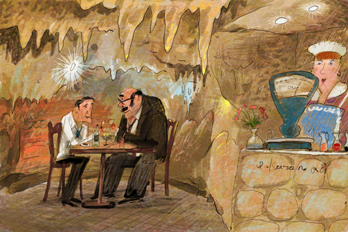 После нескольких порций мороженого в «Гроте» культурный вечер мог продолжиться в баре напротив – в легендарном «Бегемоте». Там было недорогое пиво, знаменитые горшочки с мясом и цыпленок табака. Тарелка креветок стоила копейки.