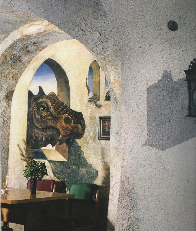 Со стены бара за посетителями наблюдал Зилант. По задумке автора, Зилант – динозавр, который любил купаться в Казанке и иногда выходил на берег. Видимо, берегом он не ограничивался: устраивал барный рейд и отдыхал, как остальные. Только без кружки пива.