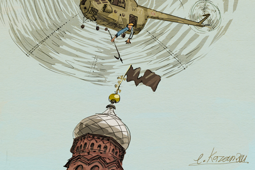 Тяжело поверить в то, что над хрупкой верхушкой собора маневрировал шеститонный вертолет. Никто не надеялся на хеппи-энд, но операция прошла успешно. Флаг благополучно сбили, вертолет улетел, казанцы успокоились. Такая вот неудачная скромная анархия.