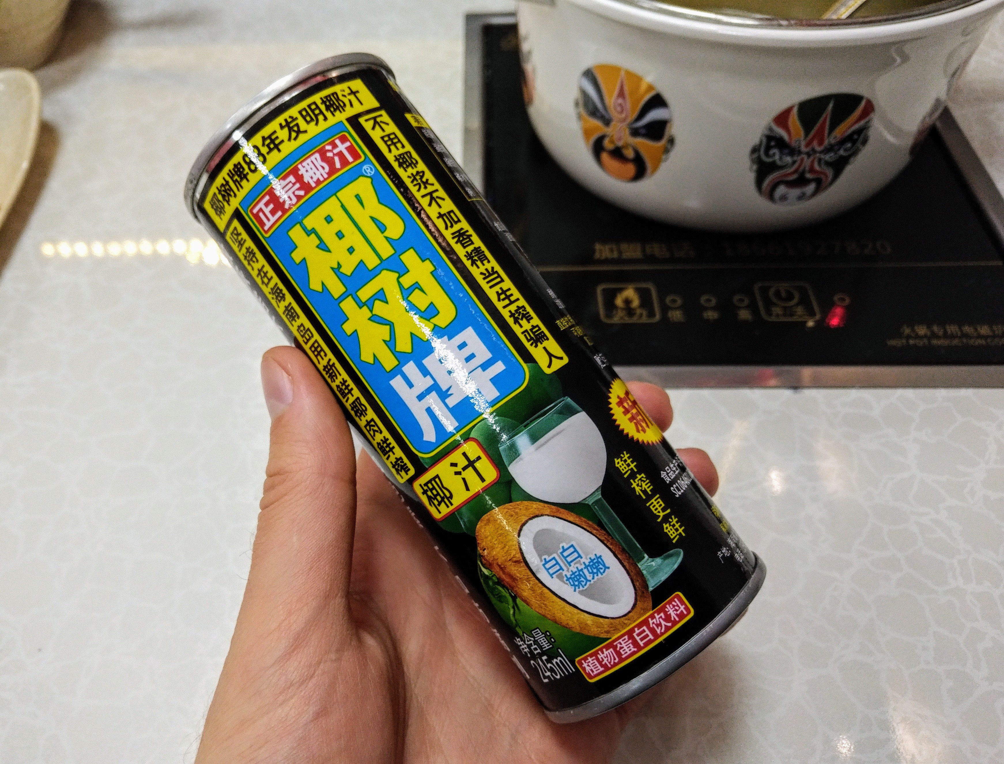10. В финале – обычные газировки, чай или напитки из Китая. Например, кокосовое молоко, которое неплохо гасит китайский пожар в желудке, стоит 200 рублей.
