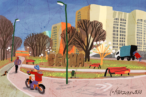 Почти в восьми километрах от центра – в Авиастроительном районе – строят комплекс «Яркий». Жить придется рядом с автозаправками, заводами и «Лентой». Из плюсов – безбарьерный двор для свободных прогулок и большая парковка. Все по канонам современных дворовых тенденций: есть зоны отдыха и воркаута.