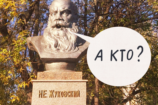 Эту надпись на памятнике в парке «Крылья Советов» люди читают как «Не Жуковский», потому что им так нравится. Это действительно не тот Жуковский, о котором все подумали. Николай Егорович не писал баллады, он основоположник современной гидро- и аэродинамики. Все серьезно.