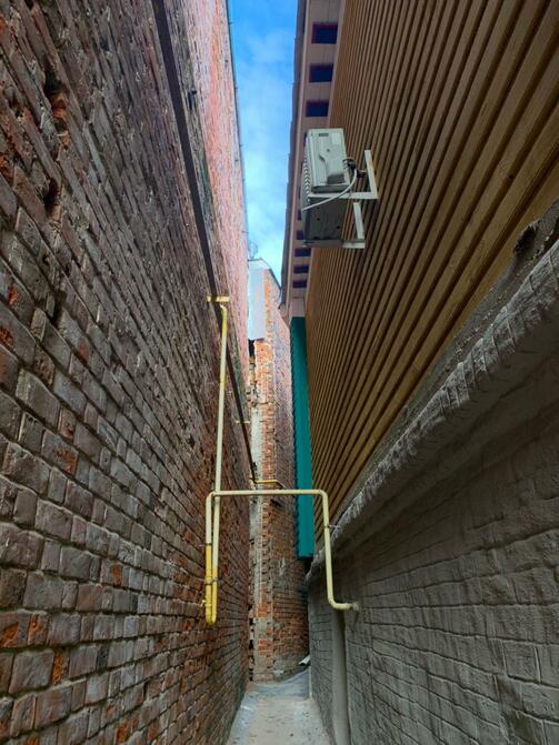 Всего пару месяцев назад этот проход был заложен кирпичами. Оказалось, легким движением руки его можно превратить в улицу. Так и сделали: кирпичи убрали, и появился он – самый узкий и самый короткий переулок: 17 метров в длину, меньше метра в ширину.