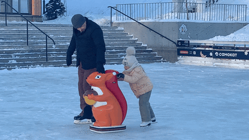 Для тех, кто впервые встал на коньки, есть помощники. Они позволяют не пасть в бою со льдом за 100 рублей в час.
