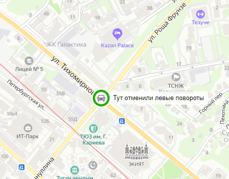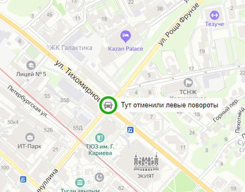 Речь идет о перекрестке рядом с театром Кариева и театром кукол «Экият». Если точнее, то Тихомирнова – Роща Фрунзе.