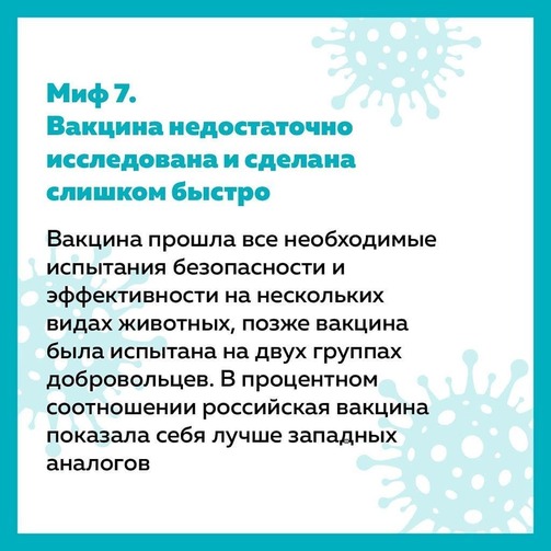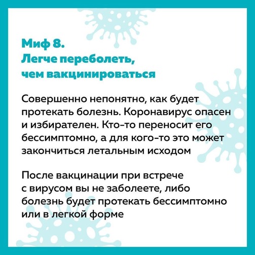 Татарстанский оперштаб по борьбе с коронавирусом разобрал главные мифы о вакцинации. Всего девять карточек – и вы уже все знаете и ничего не боитесь. По крайней мере, оперштаб на это очень рассчитывает.