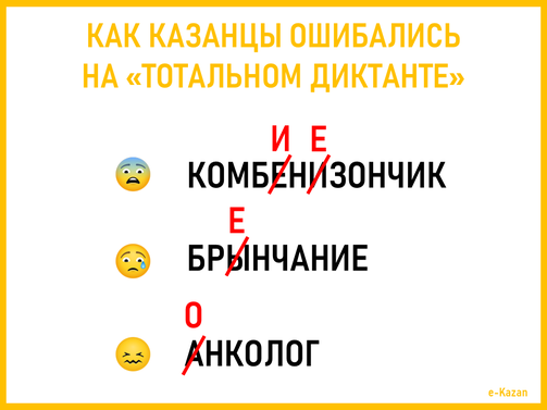 Но это не главное. Главное — то, что многие не справились со словом «комбинезончик», в котором много гласных. Оно оказалось одним из самых сложных для казанцев.