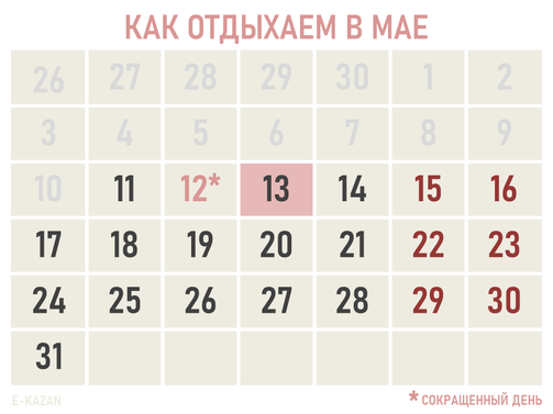 В четверг, 13 мая, Ураза-байрам. В Татарстане это официальный выходной. Рабочий день 12 мая будет сокращенным.
