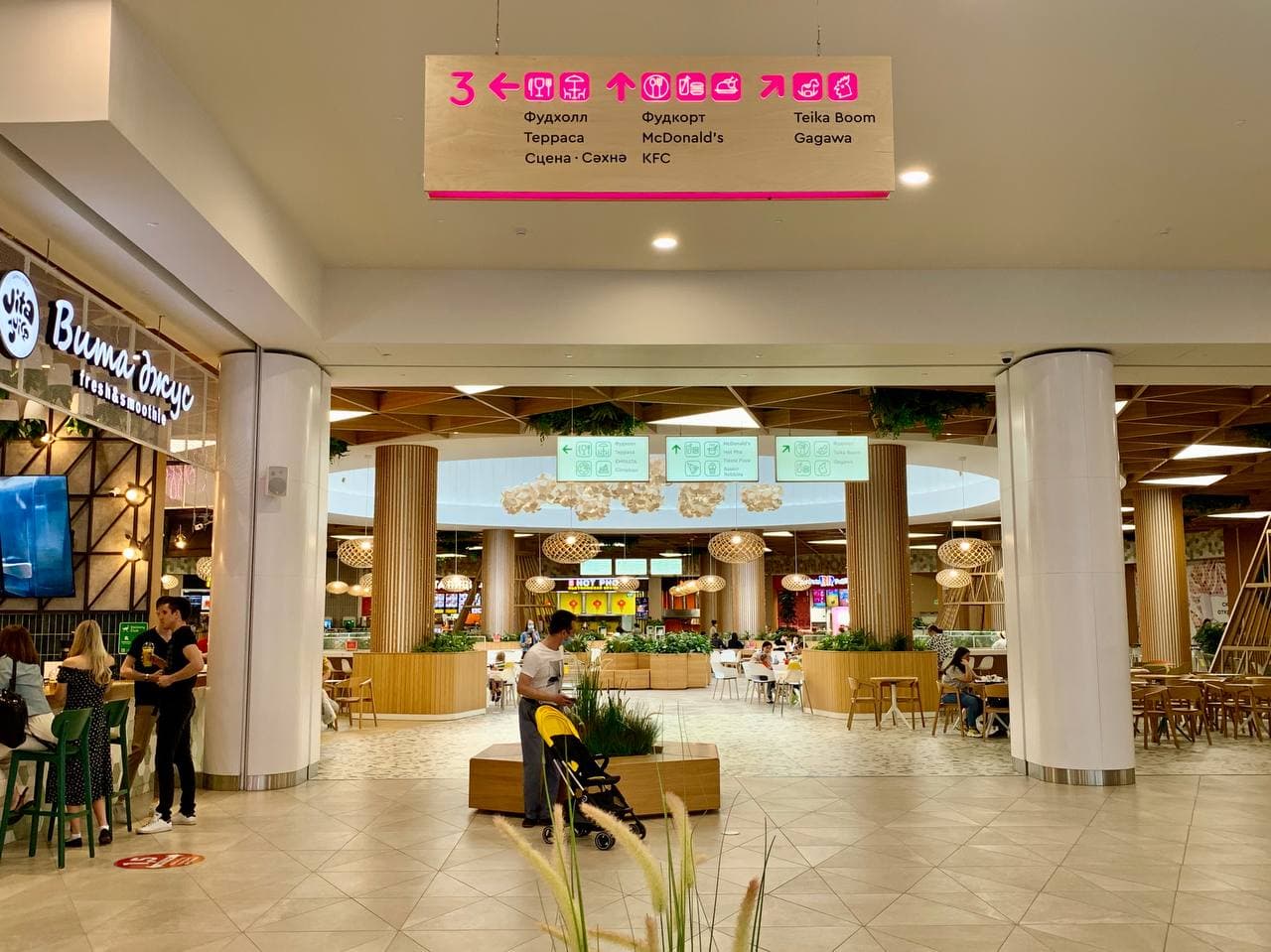 2. Подняться на третий этаж – туда, где фуд-корт. Взять что-то для легкого перекуса или основательного обеда, но это исключительно по желанию. И найти один из указателей, который выведет вас на путь истинный. Ну или просто на террасу.