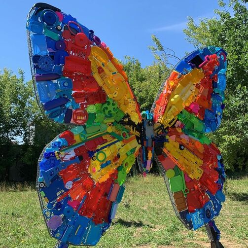 В Горкинско-Ометьевском лесу появился арт-объект «Эффект бабочки». Он трехметровый, сделан из пластиковых отходов и обошелся в 500 000 рублей.