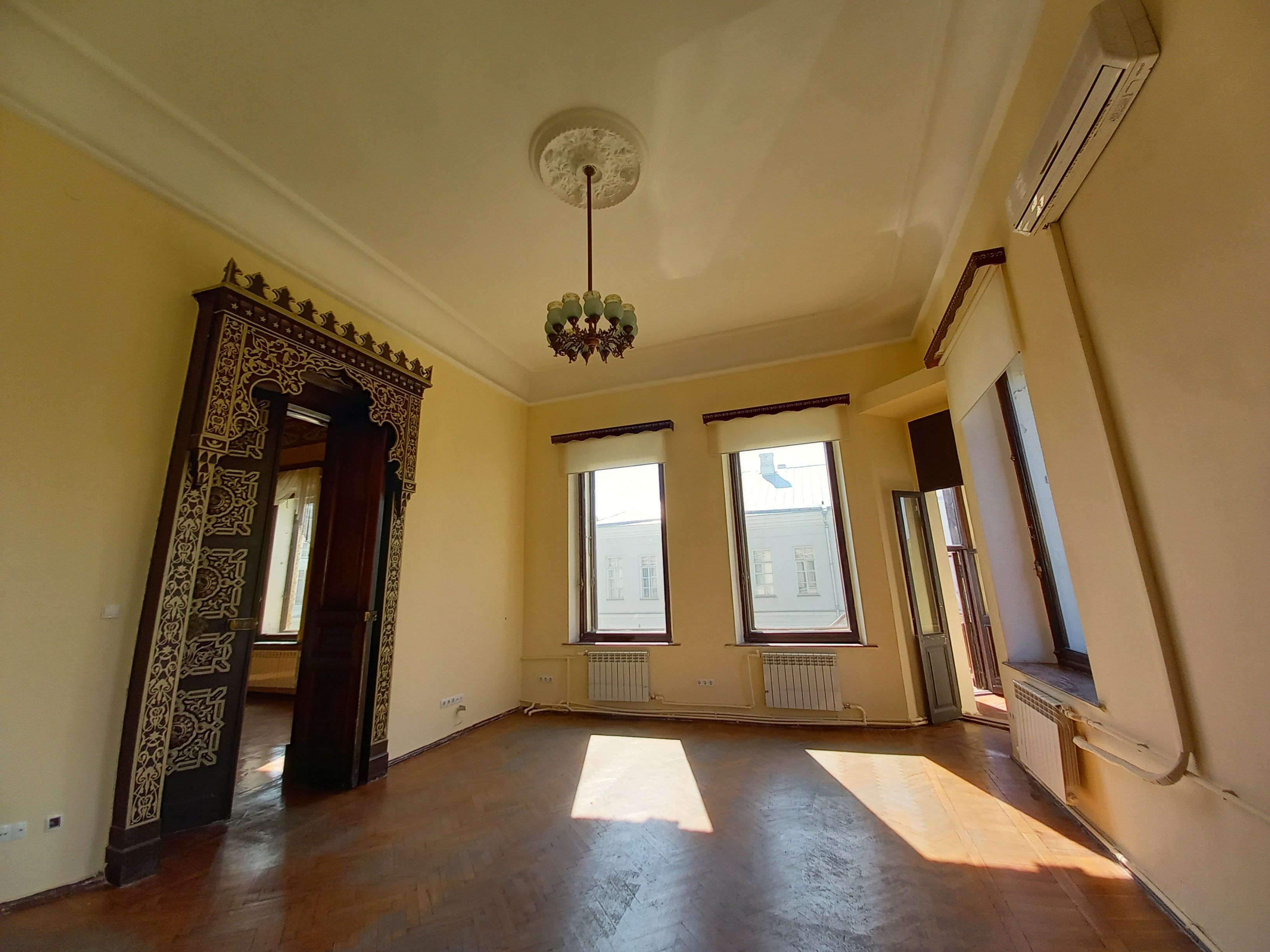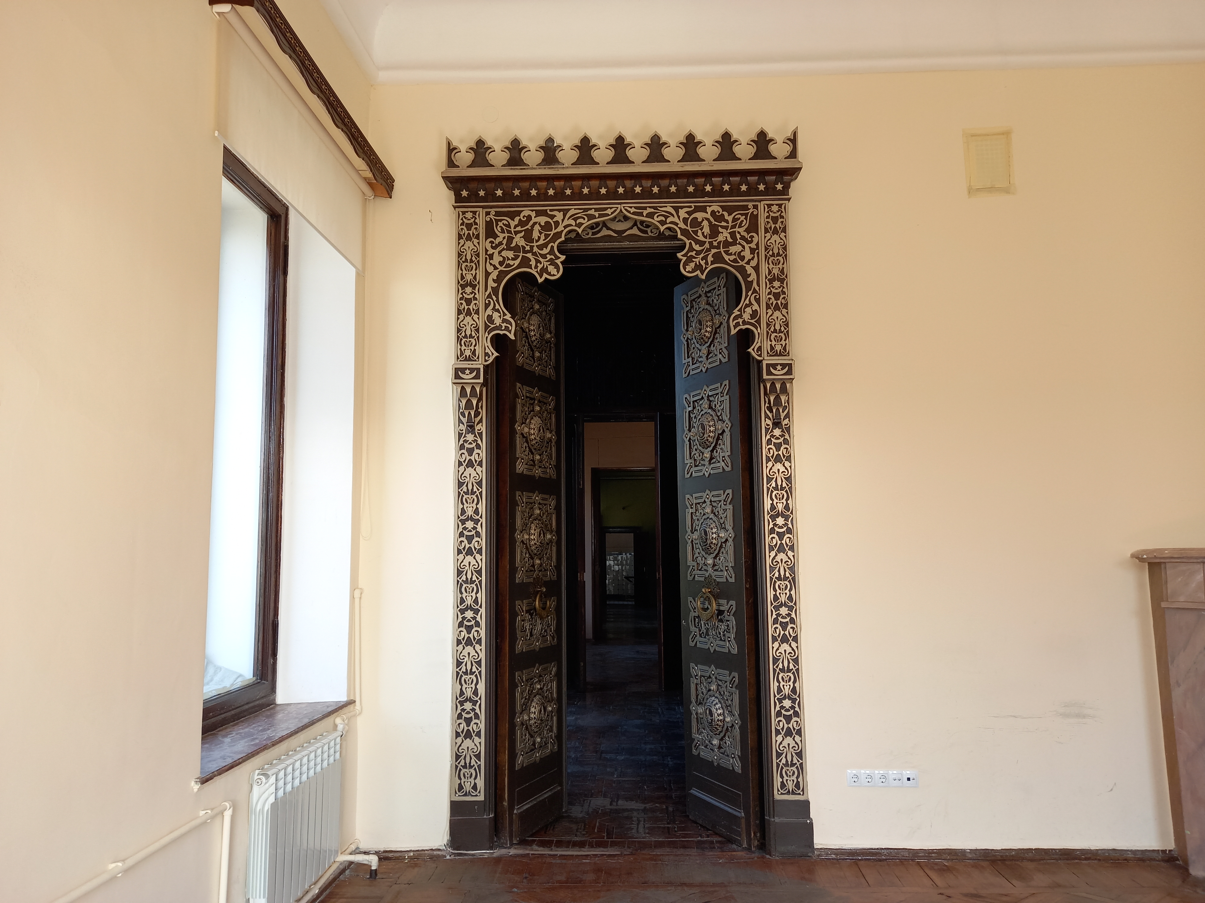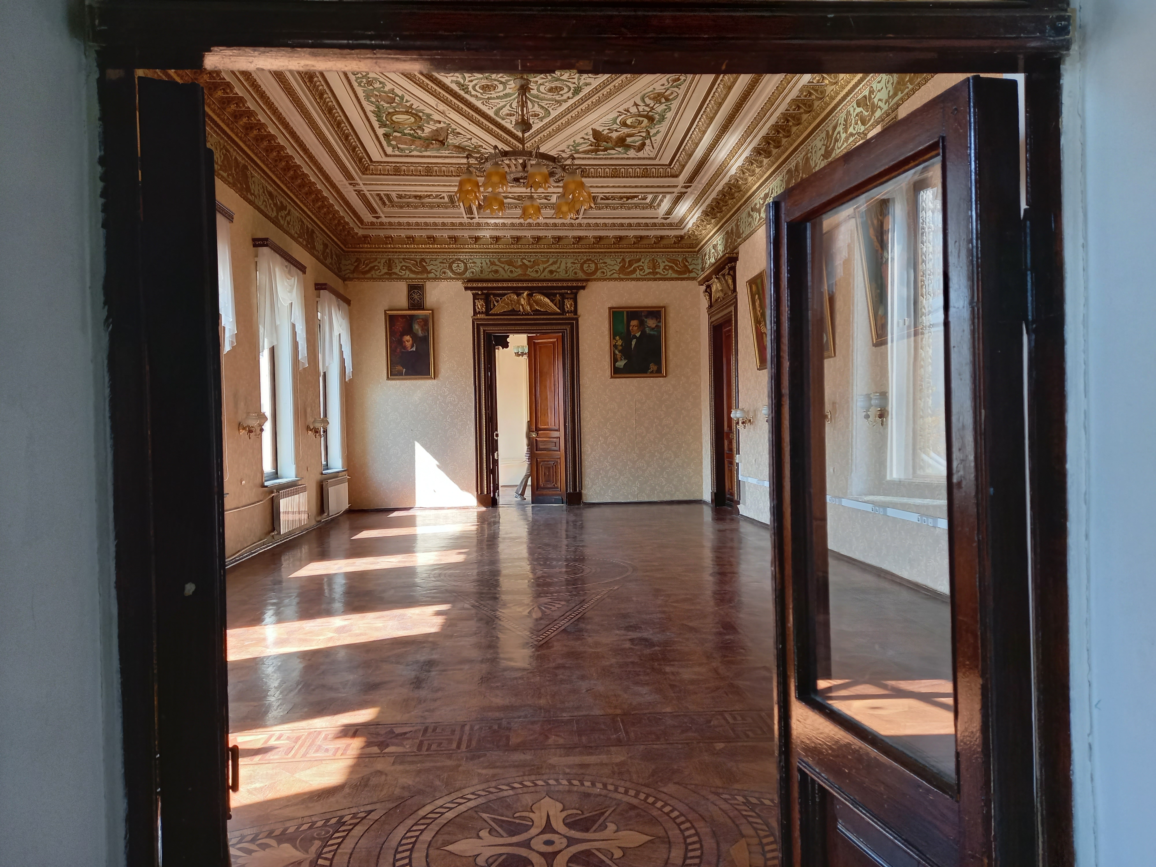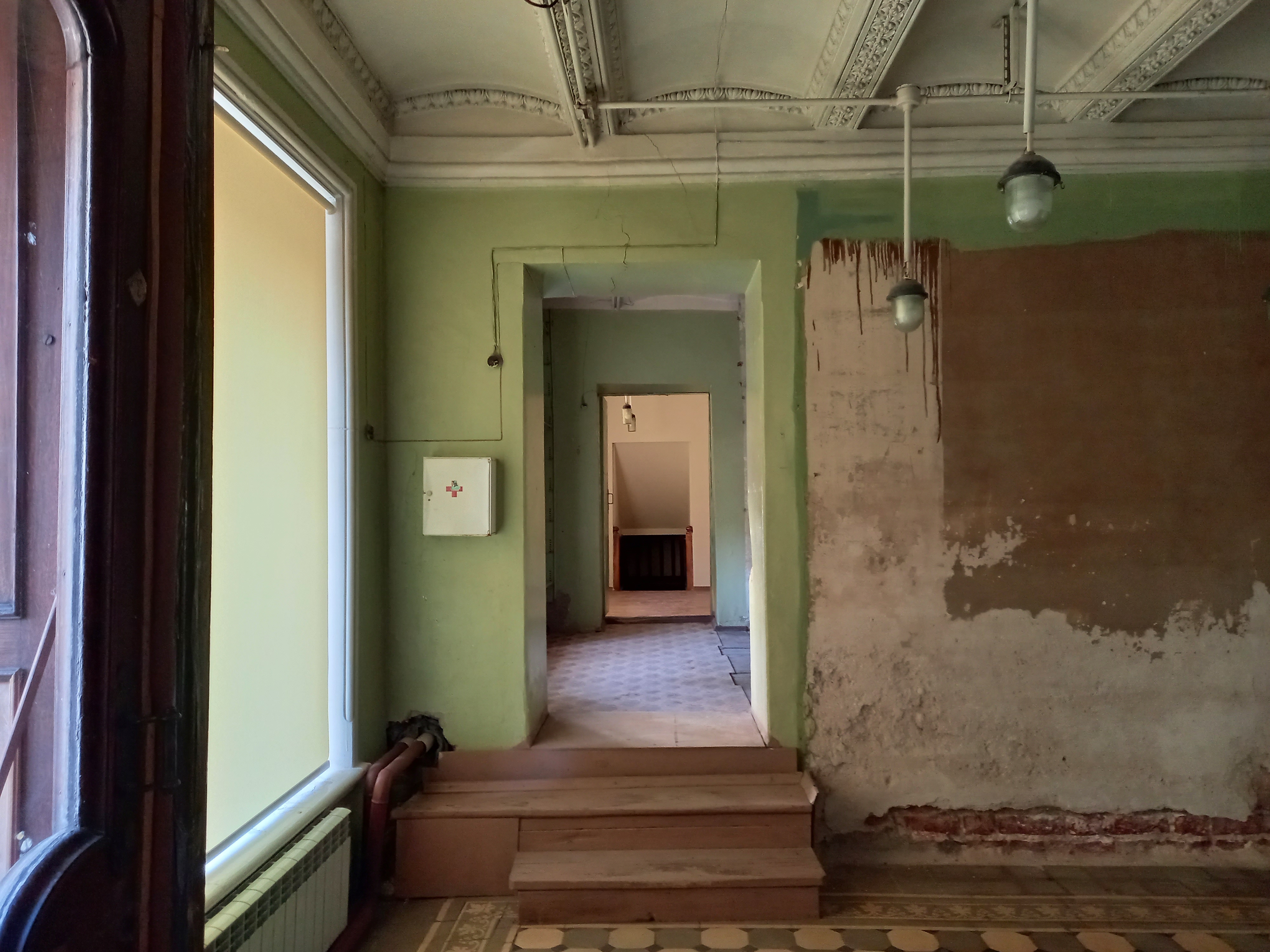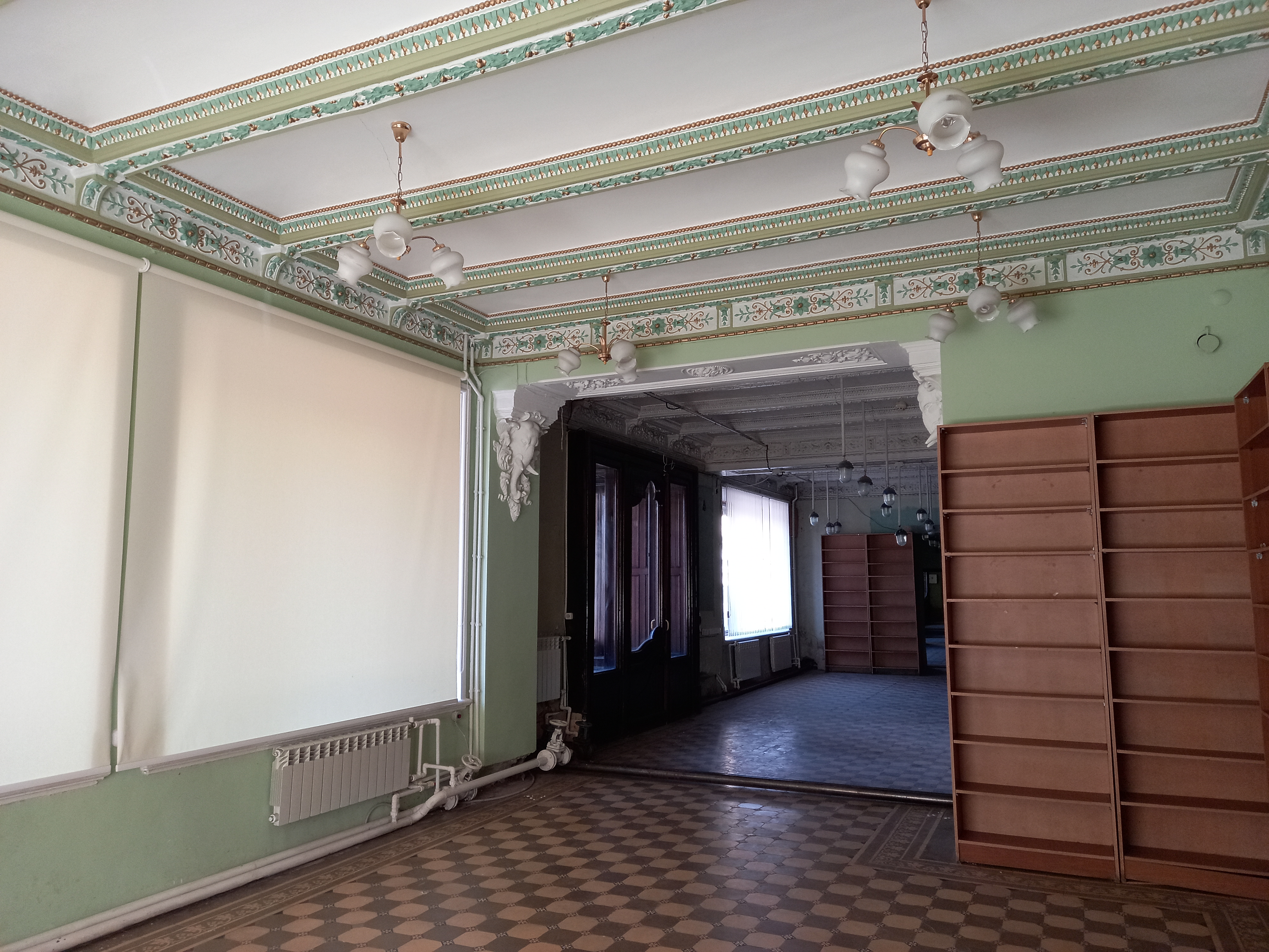 Когда-то в здании на Кремлевской, 33 жили Ушковы, квартиросъемщики и магазины. Потом там обитала Нацбиблиотека, а сейчас живет она — тишина. Пока ее тревожат только экскурсиями, но скоро туда придет реставрация.