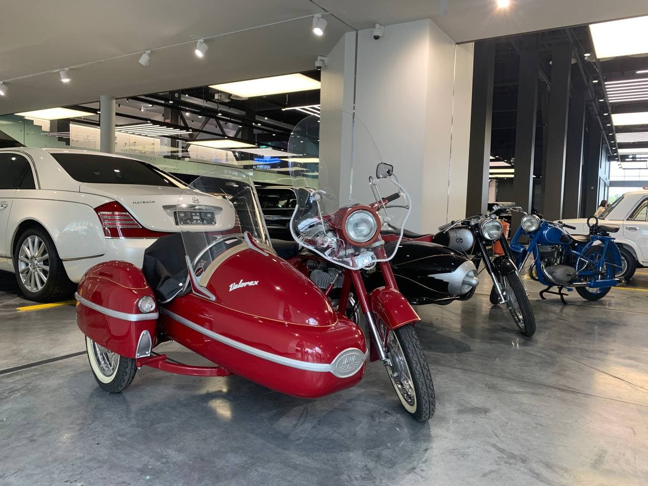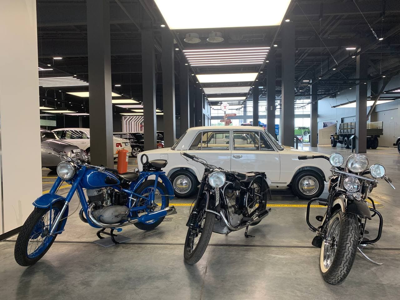 В выставочном центре два этажа и шесть зон. На первом — зарубежные и советские авто, мотоциклы и зона команды «Камаз-мастер». На втором — кафе-коворкинг и музей наград гонщиков «Тимерхана».