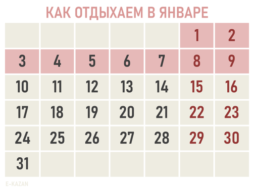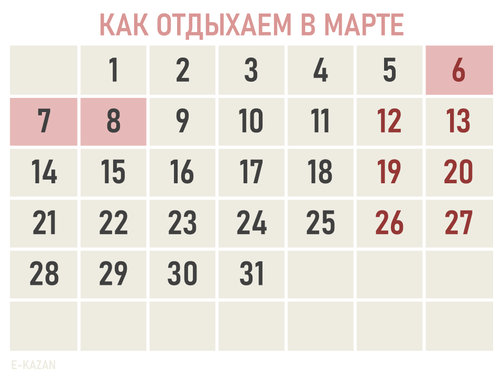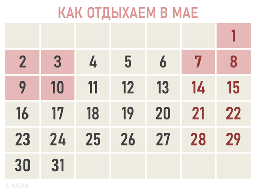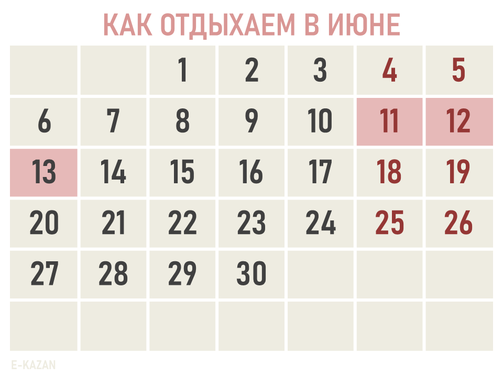 В Казани выходных будет еще больше: к этому списку нужно добавить Ураза-байрам, Курбан-байрам, День республики и День Конституции Татарстана. Их всегда утверждают позже.