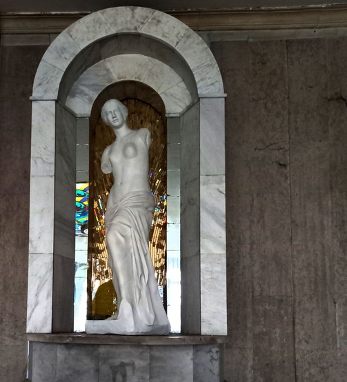 Внутри — лабиринт залов в два этажа. Каждый посвящен какой-то религии и выполняет определенную функцию: музей, концертный и выставочные залы, мастерские и зоны для высоких практик — йоги, медитаций и стояния на гвоздях.