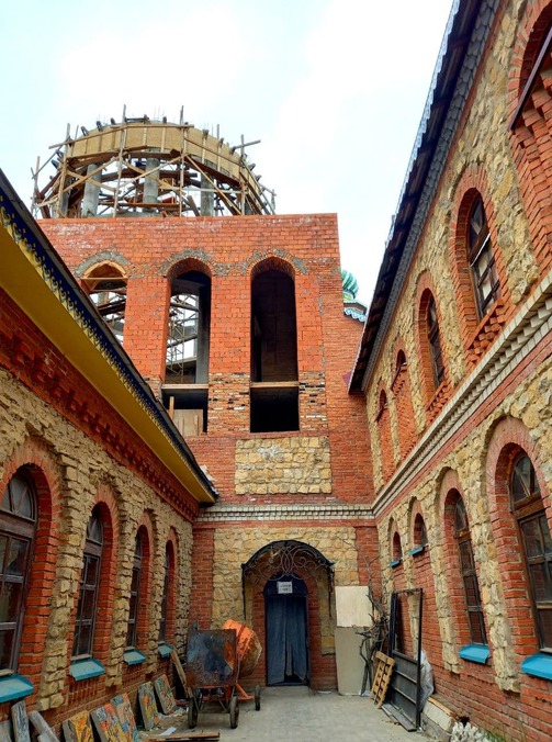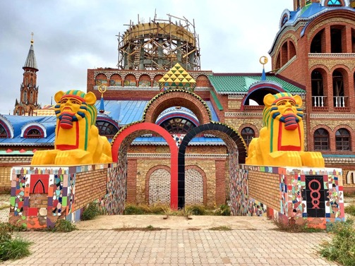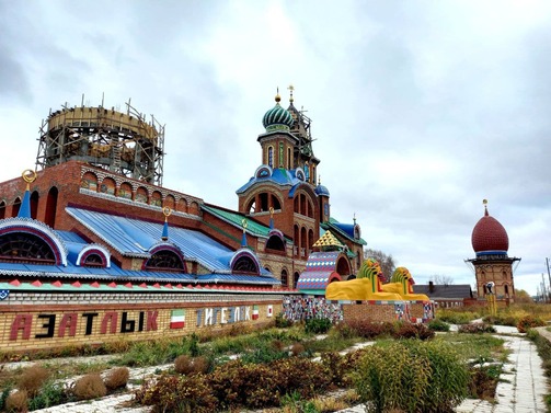 Эклектичное здание уже давно стоит в Старом Аракчино. В 1994-м его начал создавать архитектор и скульптор Ильдар Ханов, но закончить не успел. Храм до сих пор строят его последователи. По идее это не религиозный, а арт-объект. Никаких служб и обрядов, только искусство.