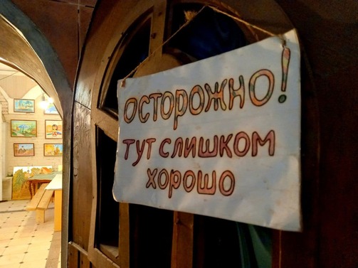 Но отвлекитесь от живописи и обязательно загляните на второй этаж. Там вас ждет мастерская и небольшая резиденция любителей всего буддистского: йоги, законов кармы и медитаций.