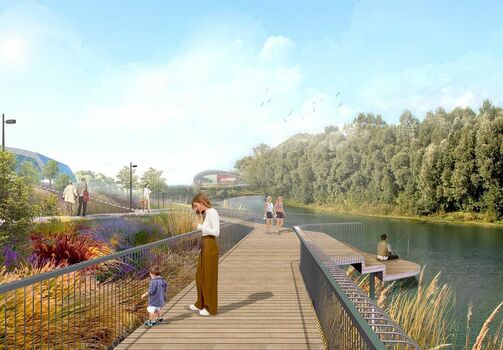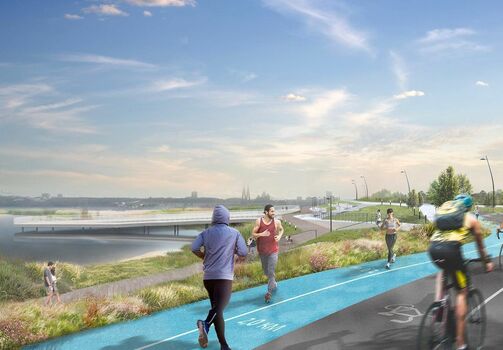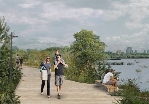 Стройка начнется в следующем году. Парк подружит природу со спортом. Здесь высадят сосны, березы, тополя, декоративные ивы, клены, кустарники, многолетние цветы и злаки. Вдоль берега проложат пятикилометровый пешеходный и велобеговой маршруты. Обустроят зоны, где можно заниматься уличными видами спорта и играть в футбол.