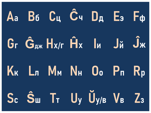 Его алфавит построен на основе латинского и состоит из 28 букв. Мелким шрифтом указано русское произношение — смотрите, как все просто: