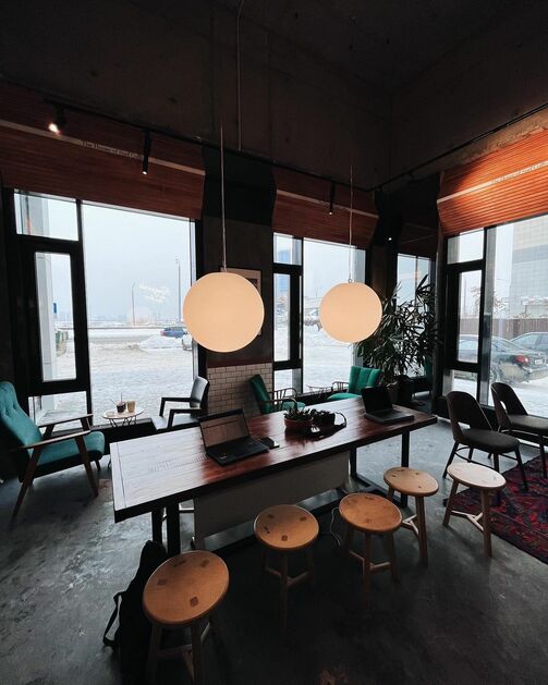 В Казани открылась еще одна кофейня Surf Coffee — с высокими потолками, панорамными окнами и голыми стенами без краски и обоев. Она расположилась там, где была очень нужна: в ЖК Savin House на берегу Казанки, сразу после моста Миллениум.