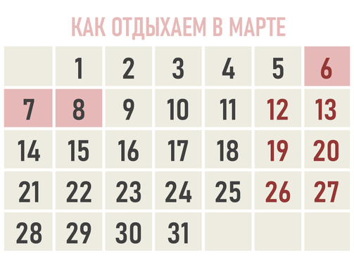 7 марта/понедельник — выходной.
