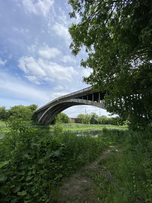 Вот вам немного фактов, чтобы стоять у моста было интереснее. Его начали строить еще в 1920-х годах, и почти сразу жизнь не задалась: одно из оснований развалилось. В 1930-е по нему пустили конное движение, потом — автомобильное. После и вовсе проложили рельсы, по которым покатил пятый трамвай.