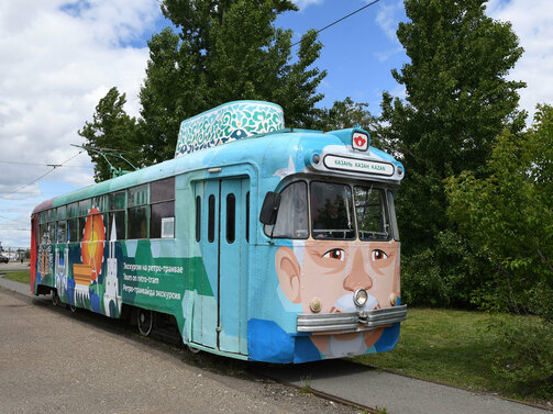 В Казань возвращается экскурсионный трамвай с тюбетейкой и портретом бабая. Он будет ходить по маршруту ж/д вокзал – речной порт.