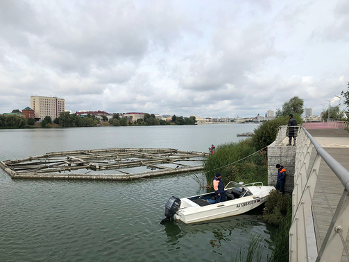 Сегодня на Кабане демонтировали самый большой фонтан Казани. Плавающую конструкцию весом 13 тонн подвезли к берегу и подняли краном. Чуть позже ее разберут специалисты.