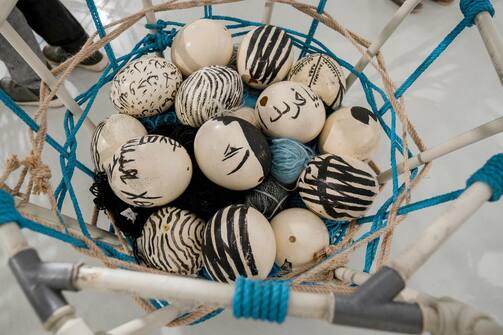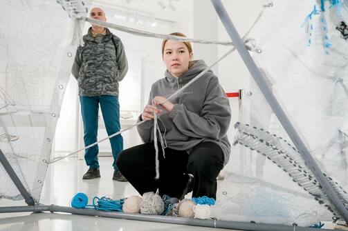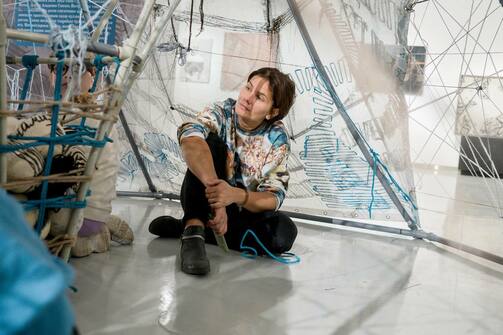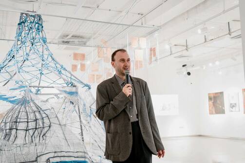 В Нацбиблиотеке открыли выставку «Путь» Сании Саженской. Как это часто бывает с современными авторами, описать работы двумя словами нельзя. Да и тремя тоже. Поэтому передадим слово организаторам выставки:
