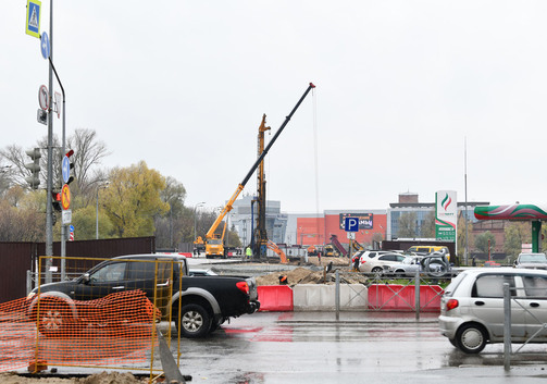 На другом конце города идет не менее важная стройка. Речь о реконструкции Горьковского шоссе. Каждый день здесь трудятся 100 человек и 32 единицы техники, чтобы наконец вылечить его от пробок. Вот как это выглядит.