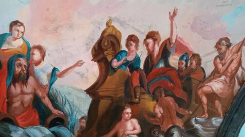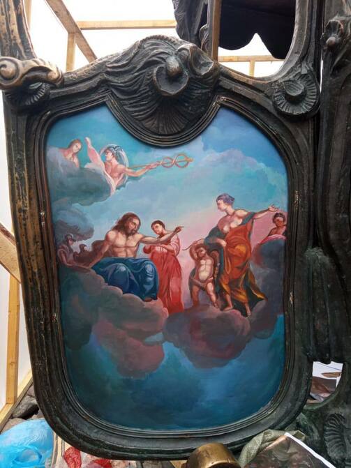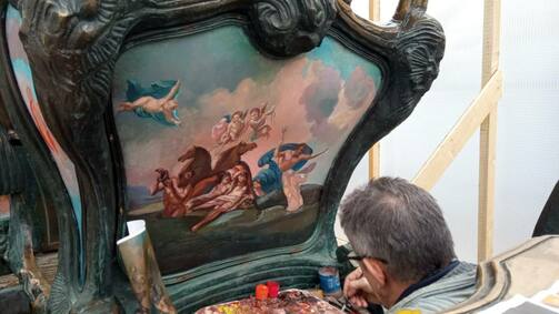 Внутри работает мастер — член Союза художников РТ Ильнур Бакиров. В течение двух недель он освежит рисунки на карете, и ее распакуют обратно. Иначе туристам будет негде фотографироваться.