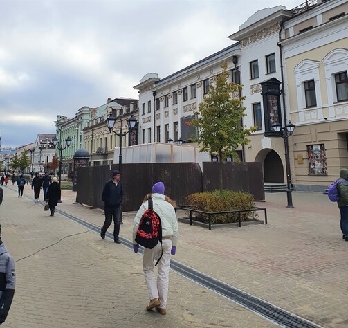 Карета на Баумана закрылась не реставрацию. В прямом смысле: ее накрыли полупрозрачной коробкой и окружили забором.