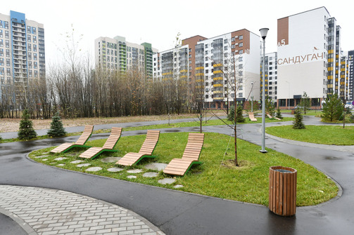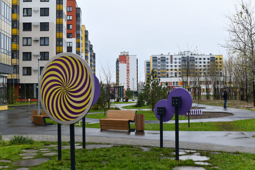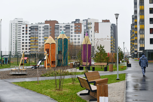 На фото «Сандугач» выглядит почти как «Арт Сити»: те же разноцветные дома, дворы без машин, длинный бульвар и яркие арт-объекты.