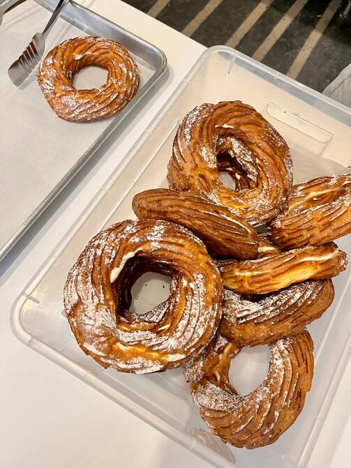 Фильтр-кофе — 160 рублей, капучино — 200, плетенка с кардамоном — 140, бриошь с лавандой и лимонным кремом — 160, круассан с шоколадом — 240 рублей.