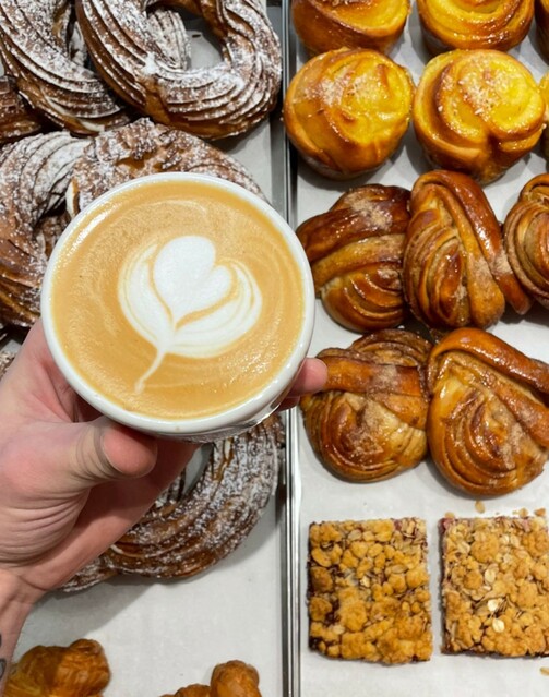 Выпечку привозят из «Пташки». Цены такие: плетенка с кардамоном — 140 рублей, бриошь с лавандой и лимонным кремом — 160, круассан с шоколадом — 240. Капучино стоит 200 рублей.
