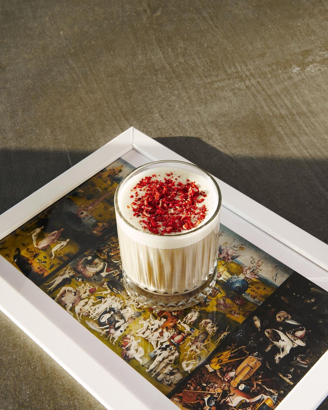 5. «Сад земных наслаждений», Иероним Босх. Ягодно-терпкий напиток на основе чая матча, миндального молока и пюре клубники.