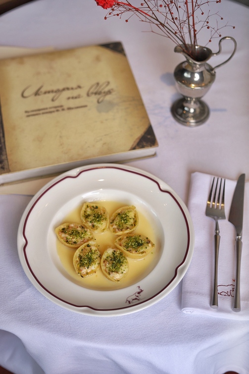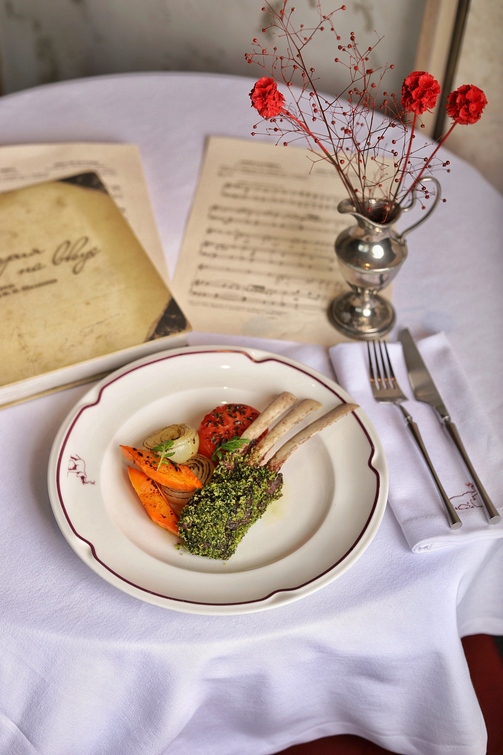 L’elephant обыграл идею с шаляпинским меню аристократичнее «Сластей». Их блюда — авторская вариация блюд из тетради его личного повара Николая Хвостова. В ней более тысячи рецептов. L’elephant взял девять, и вот что вышло: