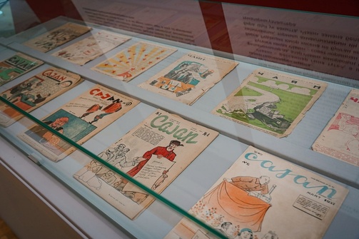 На стенах музея развешаны карикатуры разных лет, а на витринах — обложки журналов: с 1923 года до наших дней.