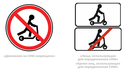 6. Появились специальные дорожные знаки. Они разрешают, ограничивают и запрещают движение на электросамокатах.