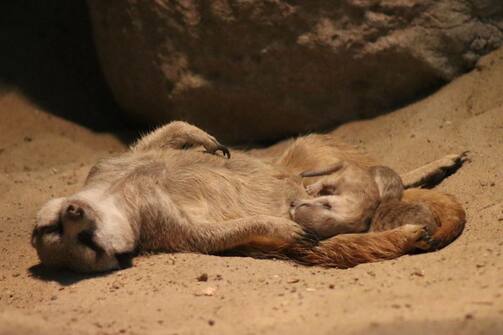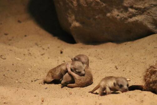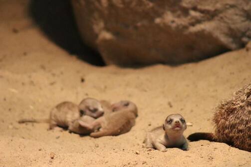 Сурикаты очень внимательны к потомству, но иерархия у них строгая. Рожать в группе может одна альфа-самка, а остальные — только помогать в воспитании. Сейчас все ждут своей очереди, чтобы поухаживать за маленькими сурикатами и научить их своим любимым трюкам.