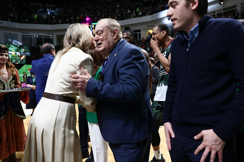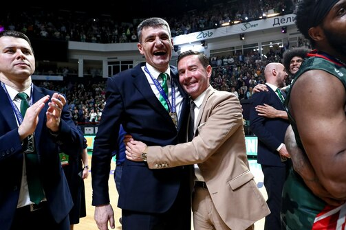 2. Пока игроки сходили с ума от счастья, министр спорта Татарстана Владимир Леонов нежно обнимал главного творца этой победы — наставника УНИКСа Велимира Перасовича:
