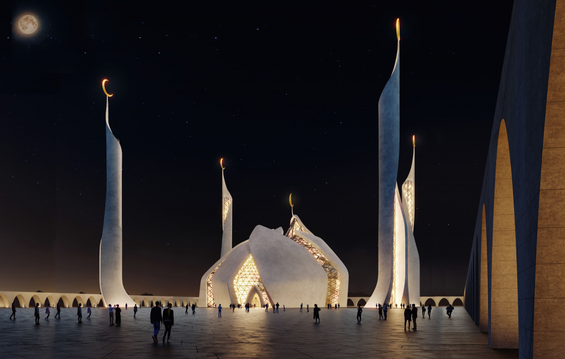 Авторы проекта — известное московское архитектурное бюро «Цимайло, Ляшенко и партнеры». Вот что они пишут о своей концепции Соборной мечети: