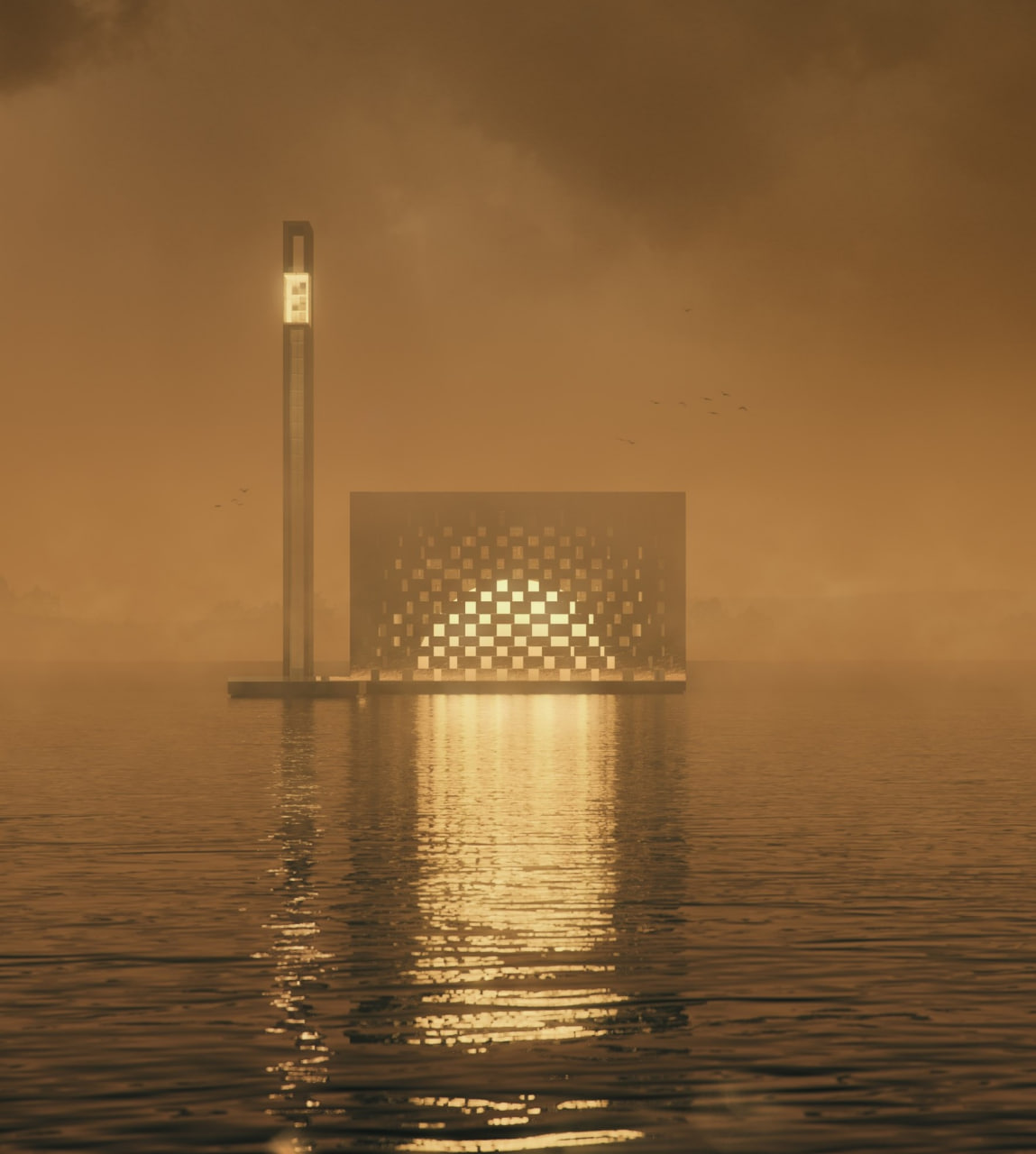 Масштаб мечети подчеркивает единственный минарет, в котором находится смотровая площадка. Расположение на воде раскрывает значение слова: “минарет” в переводе с арабского — “маяк”. Он символизирует духовный ориентир для верующих и в то же время является ориентиром в городе».