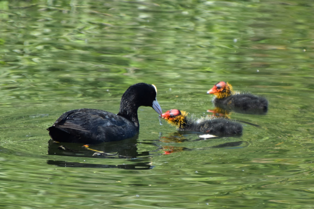 На Кабане около пяти пар лысух. Они хорошие семьянины: верны друг другу, а старшие птенцы помогают родителям выкармливать младших.