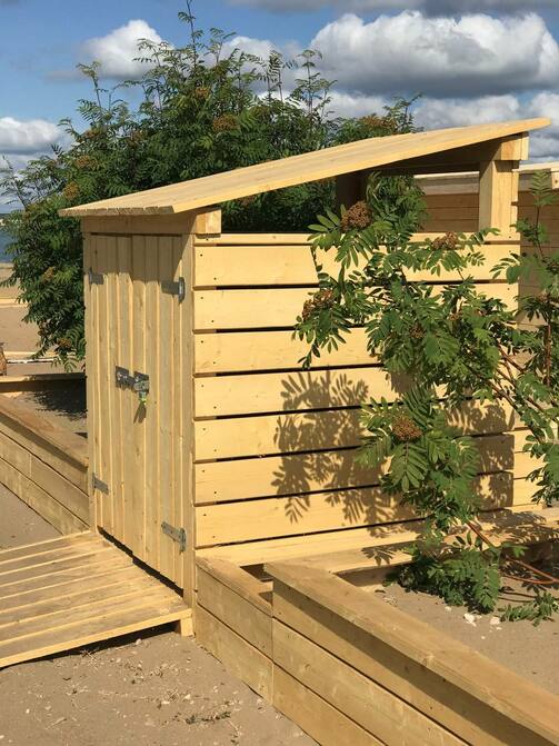 Началось обещанное благоустройство пляжа Локомотив. Его очистили, установили биотуалеты и будки для контейнеров, чтобы мусор не разлетался.